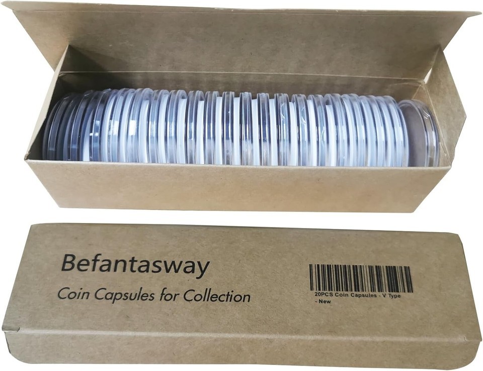 Clear Plastic Coin Capsules ? 20-Pcs with Adjustable Size Foam for Coin Display