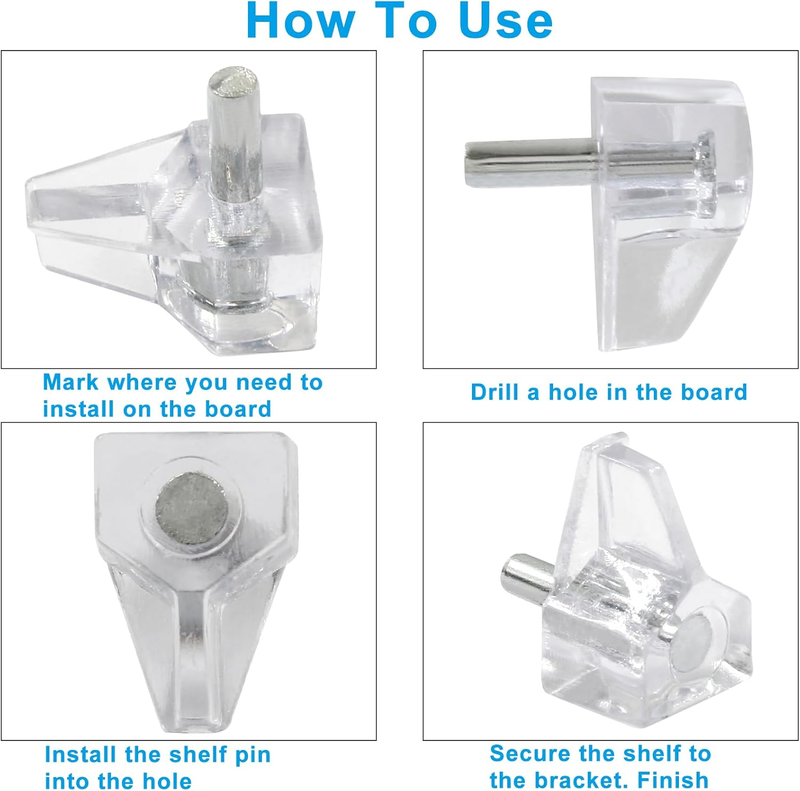 Easy to Use: These clear shelf support pegs are designed for convenience and ease of installation. Simply insert them into the holes by hand without the need for additional tools. For a tight fit, make sure the hole diameter is equal to or slightly smaller than 3mm/0.11inch.