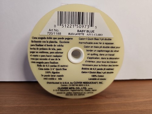 Clover fusible border bias tape. This quick bias measures 6.5 yards x double-fold 3/4? width. This is in new, unused condition.