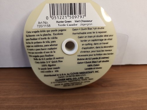 Clover fusible border bias tape. This quick bias measures 6.5 yards x double-fold 3/4? width. This is in new, unused condition.