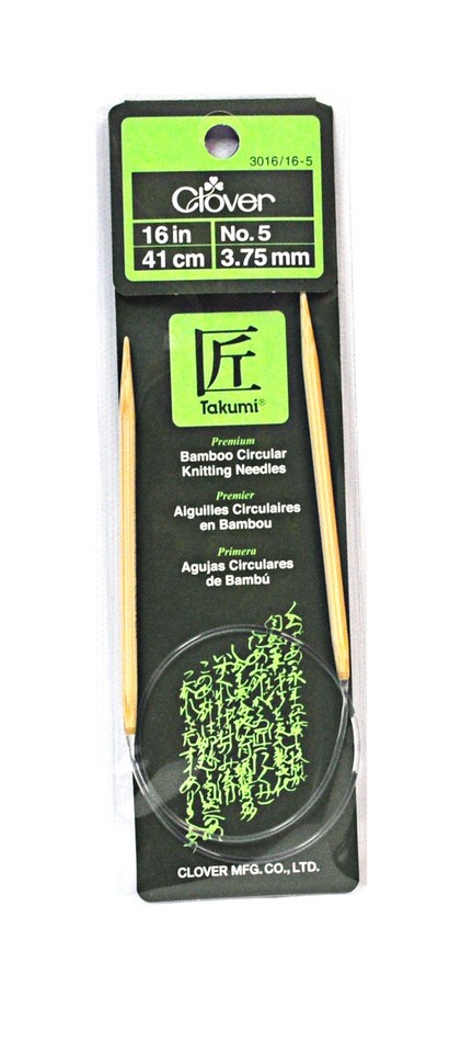 Clover Takumi Bamboo 16 Inch Circular Knitting Needle Size 5. High-quality needles created with the finest natural bamboo the long nurtured Clover manufacturing technique. With the proper glide of yarn, your hands won't feel tired even after knitting for a long time. Finished to accurate specification to ensure even loops and a beautiful knit finish. Light in weight with a warm natural touch, bamboo is the ideal material for making knitting needles. Each Knitting Needle Is polished for smoothness. Manufacturer Part No.: 3016CV16-5 CHK-3016CV16-5