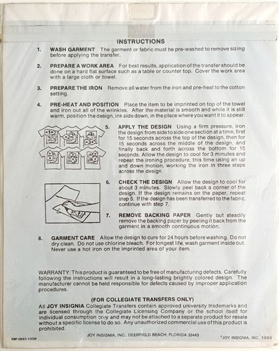 Get your hands on this vintage original Clowns Instant Iron On Transfer from 1993! Made in the United States, this transfer is a must-have for any collector or sewing enthusiast. The transfer features a Joy Insignia and is perfect for adding a unique touch to any fabric piece. It is important to review the provided images and description to ensure that this is the right product for you. It is new old stock BUT is the seal has tears and old retail stickers and the item is paper and is susceptible to wear from age and storage. ***Disclaimer on old/vintage/antique books/paper and the like: Some wear from age, use and storage which may or may not include some, none or all of the following: writing/personalized notes on inside covers and title pages(or notes on pages in the case of songbooks and sheet Music), small tears, creasing, etc.... all typical Vintage and antique book wear. Opposite side may or may not have related or unrelated texts or prints which I have deemed less interesting than the one presented. Your opinion may differ See top of description for any outstanding flaws. **All items pictured are fully usable and/or functional unless otherwise noted** Inspect pics closely and ask any questions before buying or offering. Tons more toys, collectibles, paper, antique, vintage ephemera, maps, engravings, prints, vinyl, vhs, media, books, bags, handmade and more! Will combine shipping!