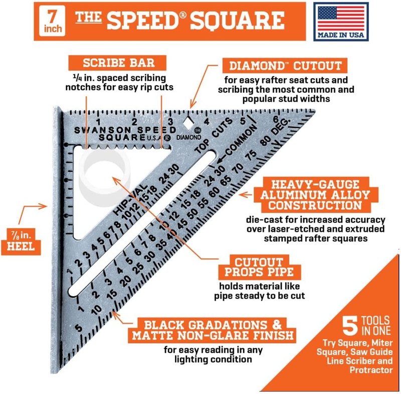 MADE IN USA: The Speed Square, made in the USA since 1925, is essential for every carpenter, construction professional, roofer, and DIYer