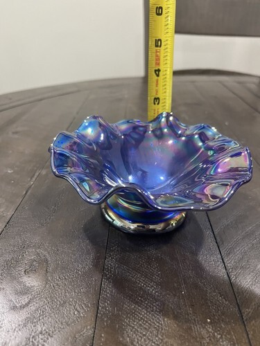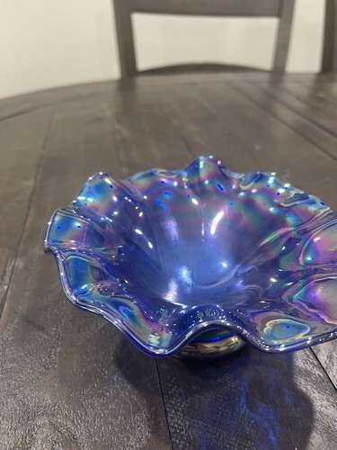 Cobalt Blue Carnival Glass Bowl Rare Ruffled Luster 6” Signed