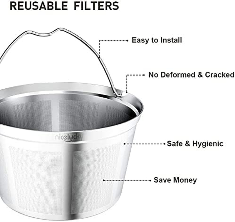 Coffee Filter Reusable 8 10 12 Cup Basket Replacement Filter-Stainless Steel Per