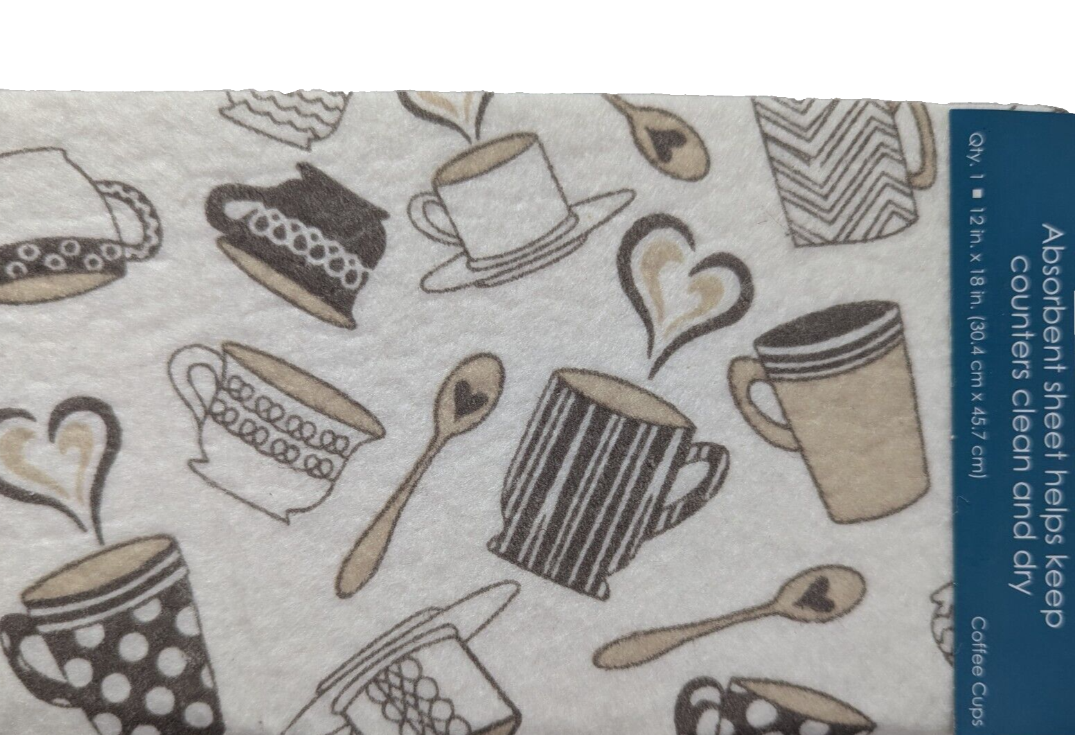 - Coffee Mat Cups Hearts Absorbent 12 x 18-inch Brown Tan Polyester Silicone NEW