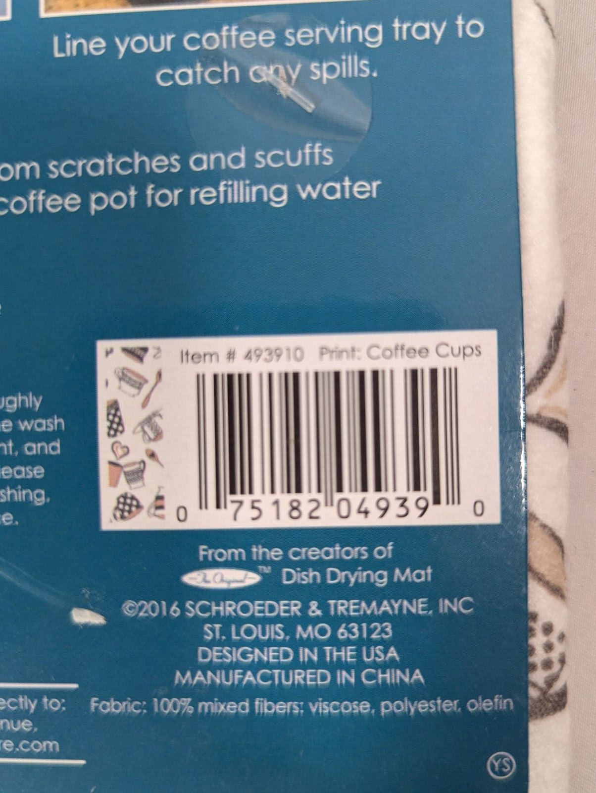 Coffee Cups and Hearts skid mat to keep your counters clean.
