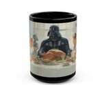 Coffee Mug, Thanksgiving Feast with Darth Vader, Norman Rockwell Style, Black