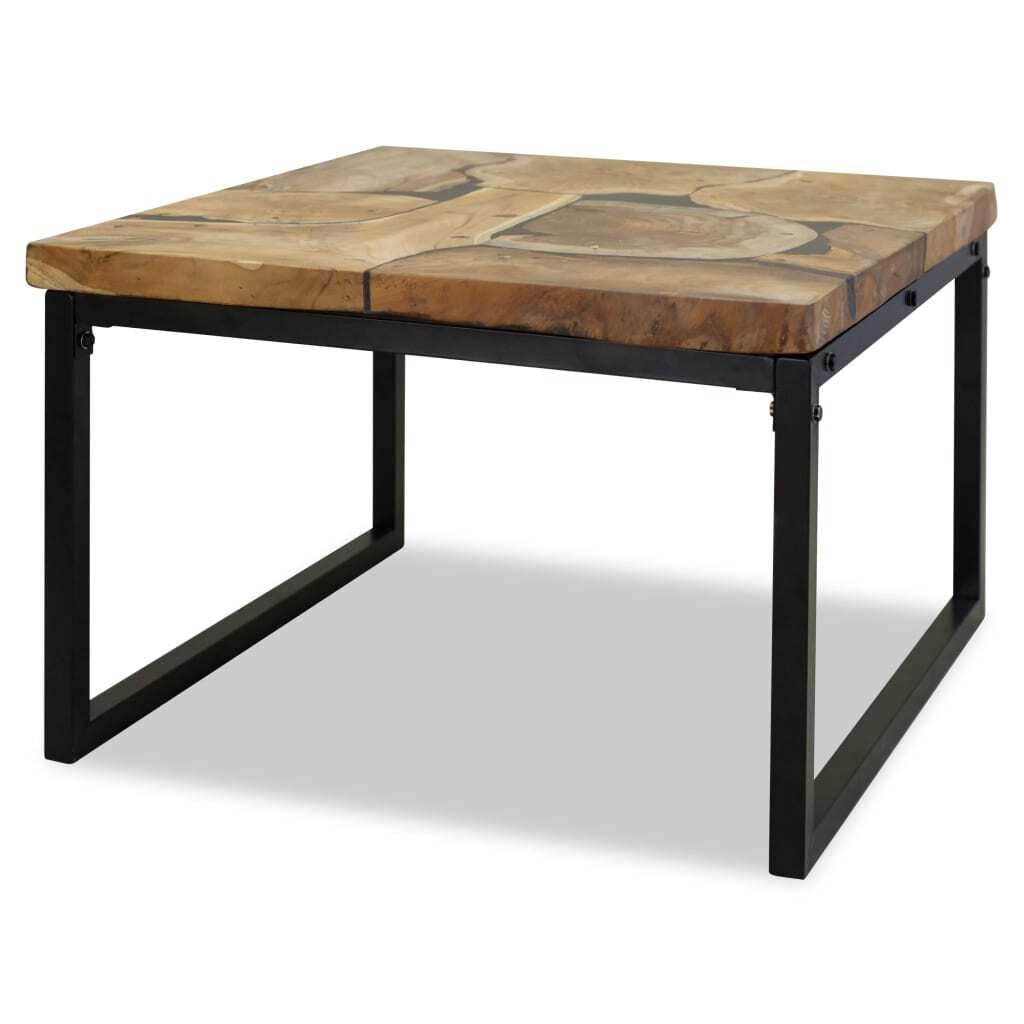 Unique Handcrafted Appeal: Each table's handmade, making every piece a special addition to your home, adding character and individuality to your living room. Robust Steel Frame: The solid steel frame ensures it lasts and can handle heavy loads, making this coffee table a reliable choice for daily use. Elegant Rustic Style: The rustic finish showcases the natural beauty of teak wood, making it a striking centerpiece in your living room. It mixes well with both classic and modern decor. Functional Versatility: Great for serving coffee, displaying decor, or enjoying snacks, this table does it all, making it perfect for casual get-togethers. Compact Dimensions: At 23.6 in wide and deep and 15.7 in tall, the table fits snugly in smaller spaces while still being very useful. It sits up to four people easily, making it a great central piece for your home. Color: Brown Shape: Square Material: Solid Teak wood Finish: Oiled Indoor/Outdoor: Indoor Only Cover Included: No Room: Living Room Maximum Number of People: 4 Dimensions: 23.6 x 23.6 x 15.7 in (W x L x H) Weight: 28.44 lbs Delivery Contains: Coffee table with steel frame Assembly Required: Yes Recommended Number of People for Assembly: 1