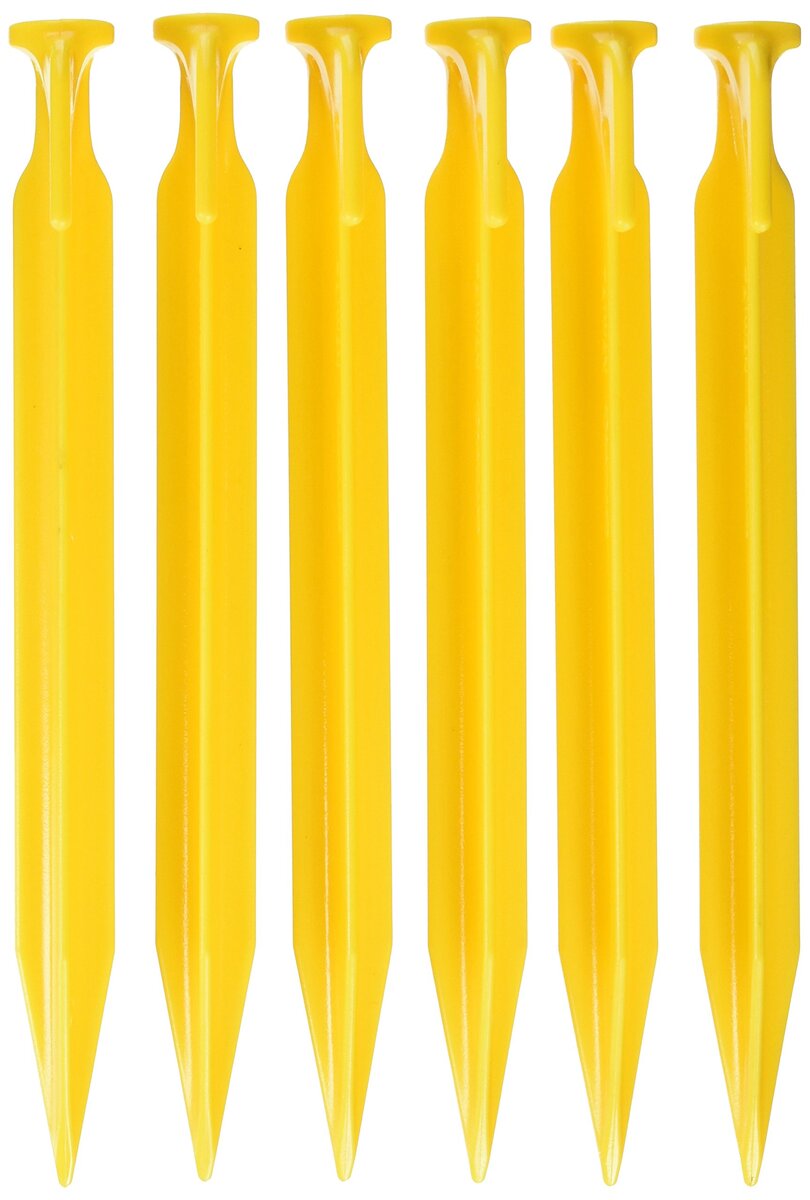 Product description: Discover the convenience of the Coghlan's Tent Pegs, designed for use with tents, canopies, shelters, and tarps. These lightweight and durable stakes are made of high-quality plastic, ensuring long-lasting use and reliable performance. The bright yellow color makes them easy to spot in any environment, and their versatile design allows for use in a variety of settings, including both ground and beach conditions. With dimensions suited for easy transportation and storage, these stakes are a must-have for any outdoor enthusiast. Follow care instructions to maintain their quality and enjoy years of use.