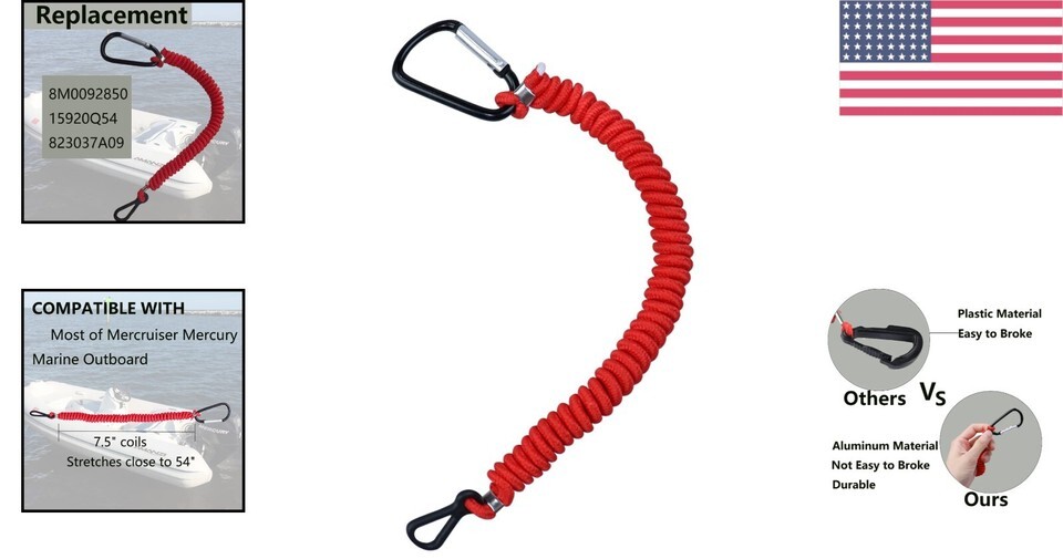 Ensure your boating experience is safe and secure with our expertly crafted Coiled Nylon Boat Kill Switch Lanyard. Designed as a perfect replacement for , 15920Q54, and 823037A09, this lanyard is fine-tuned for compatibility with most Mercruiser Marine outboard kill switch systems.