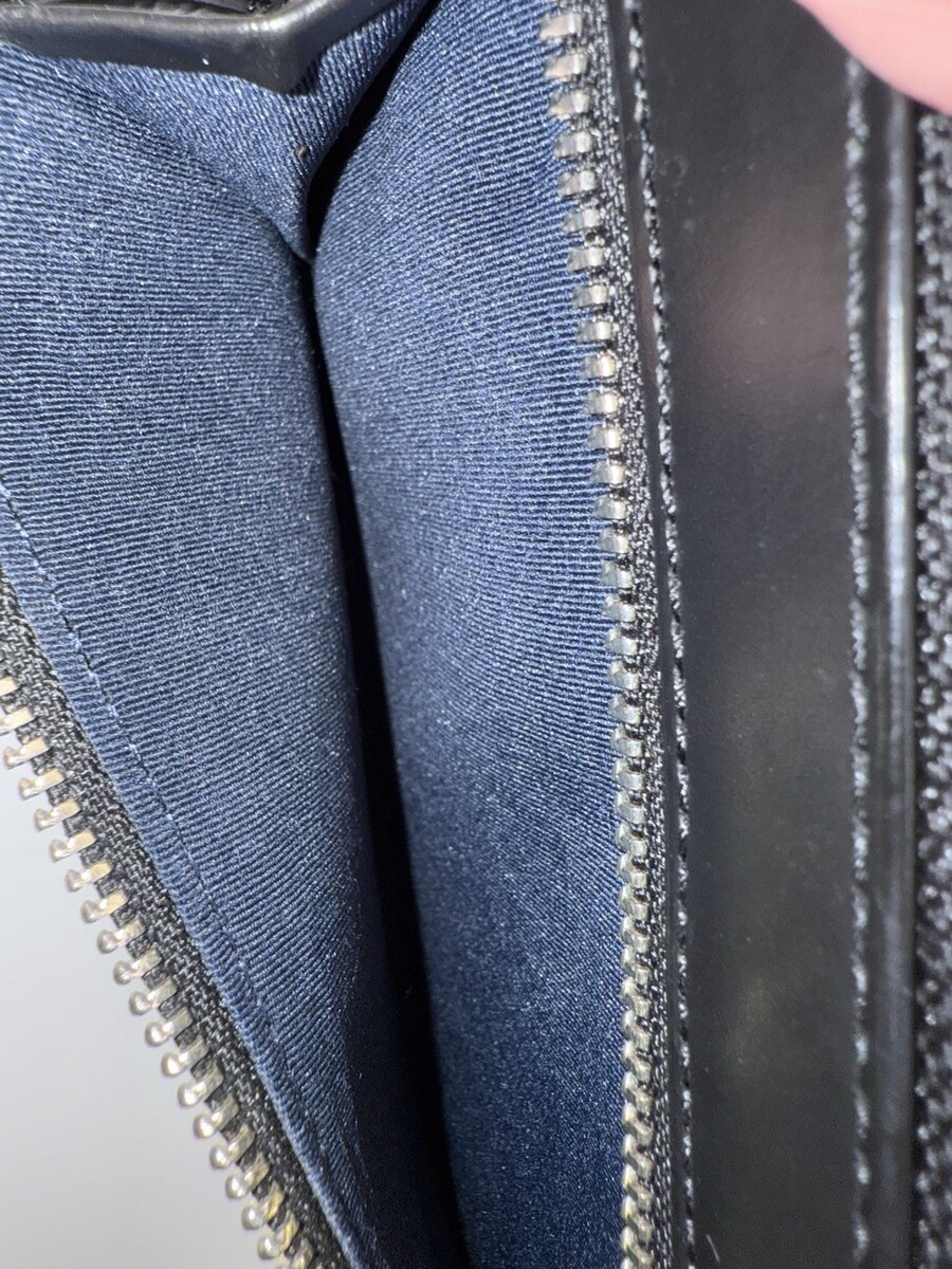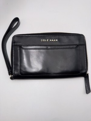 - Cole Haan Black Leather Zip-Around Wristlet Wallet Gold Hardware Genuine leather