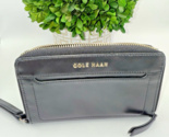 Cole Haan Black Leather Zip-Around Wristlet Wallet Gold Hardware Genuine leather