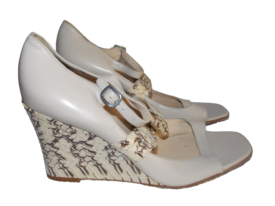 - Cole Haan PYTHON ANIMAL Leather Snake Nude Ankle Platform Wedge Heels 10B Used