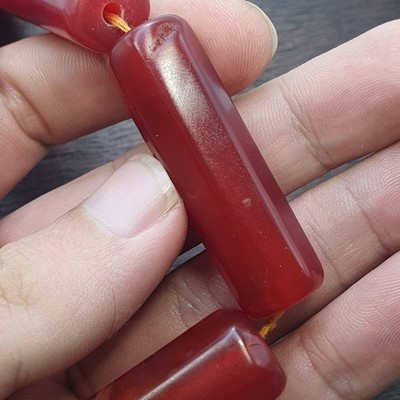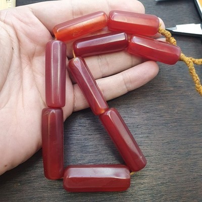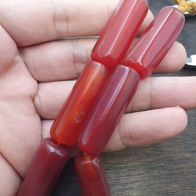 - Collana vintage di perle di agata rossa a tubo enorme himalayano