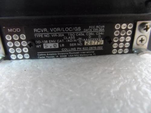 - Collins Avionics P/N 622-0876-002 RCVR, VOR/LOC/GS Type No. VIR-30A