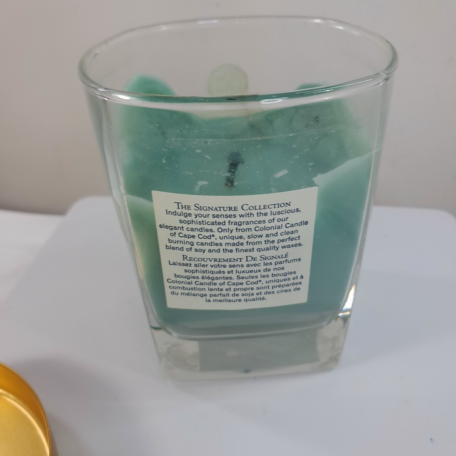 Colonial Candle Rainwater Glass Jar Bougie Aromatique aromatic lid USED Partially used as shown. About half full. see pics. Smells great!