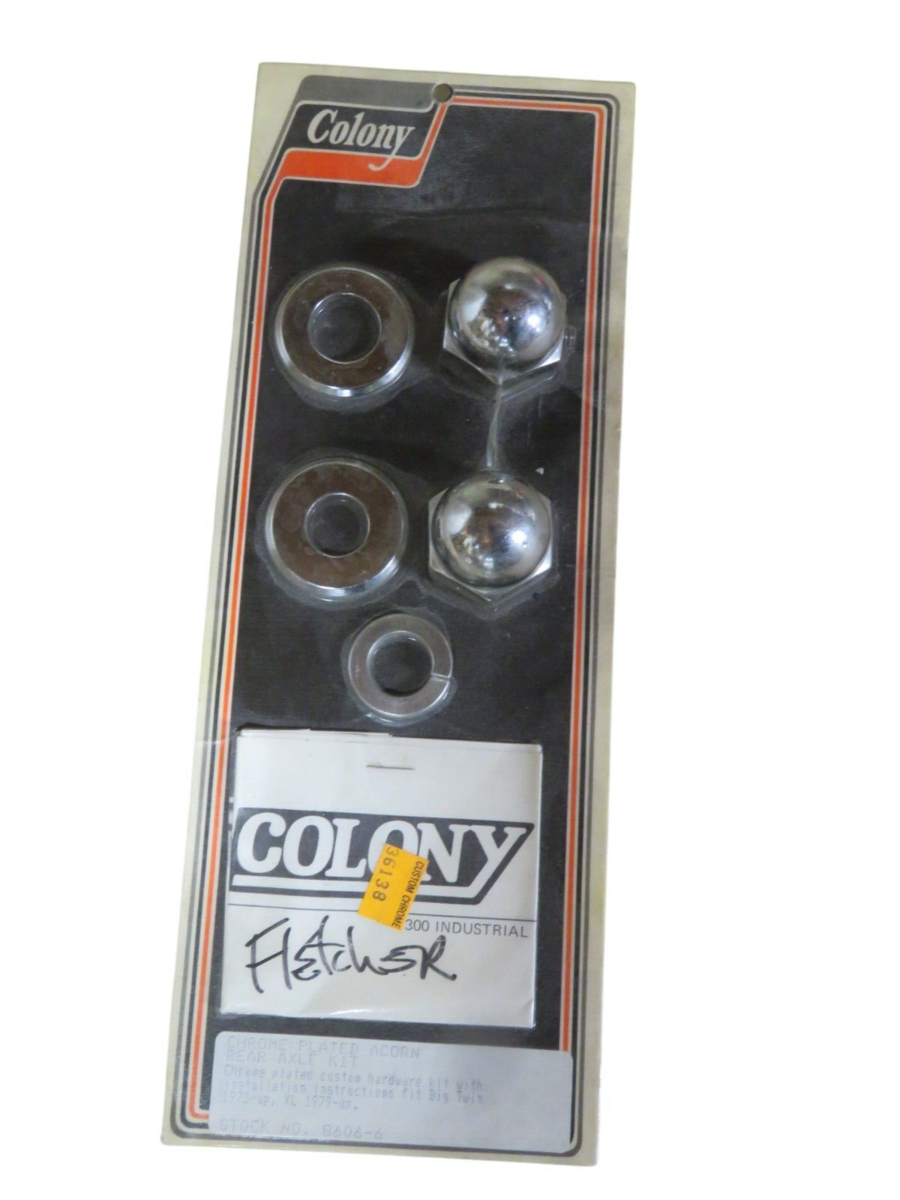 - Colony #8606-6 Acorn Rear Axle Nut and Lock Kit for Harley Chrome Plated NOS