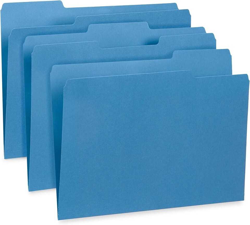 Color-Coded Blue File Folders with 1/3 Cut Tabs