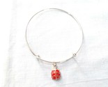 - Color Enamel Ladybug Lady Bug Charm On Silver 8" Slide Bangle Bracelet