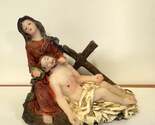 You are purchasing a beautiful small colored figurine of the Pieta. It's figurine depicts the body of Jesus on the lap of his mother Mary after crucifixion.