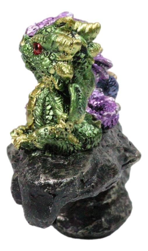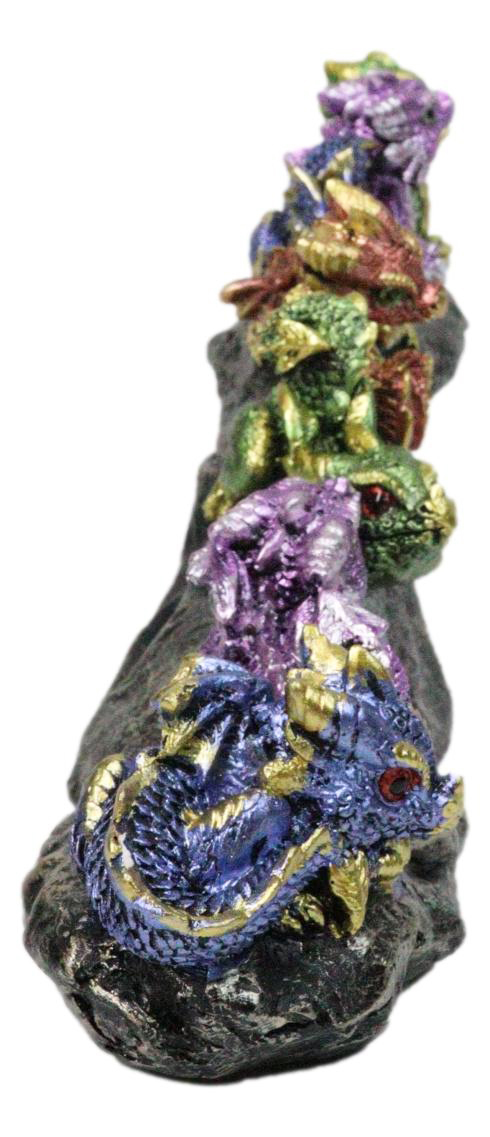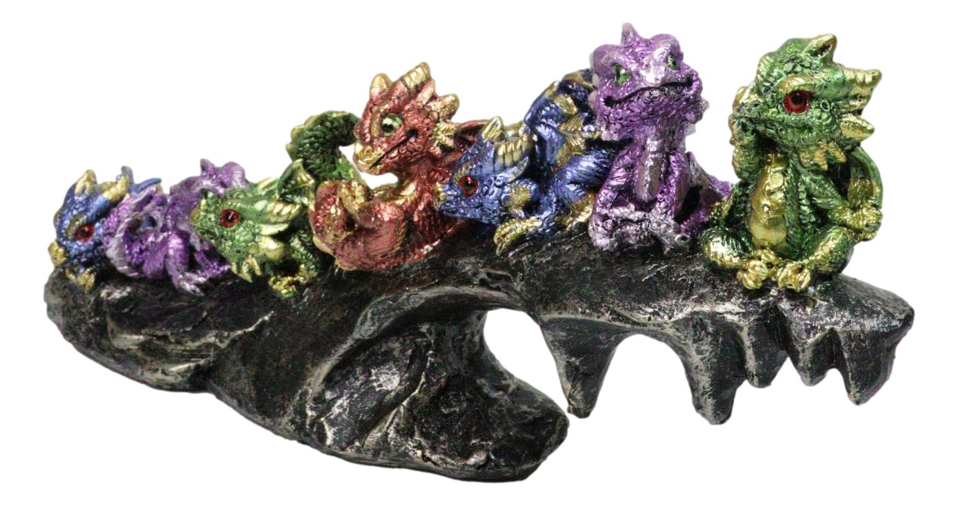 - Colorful Metallic Dragon Wyrmlings On Sloped Bridge Cliff Rock Decor Figurine