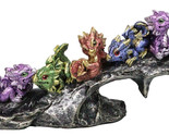 Colorful Metallic Dragon Wyrmlings On Sloped Bridge Cliff Rock Decor Figurine