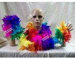 Feather Costume Boa. Rainbow Colors. The length of the boa is approx. 70". For Adult Use. Loose feathers can pose a choking hazard. Rope ends are visible and can see some fraying. Feathers do shed quite a bit. Please See all images. SOLD AS IS.