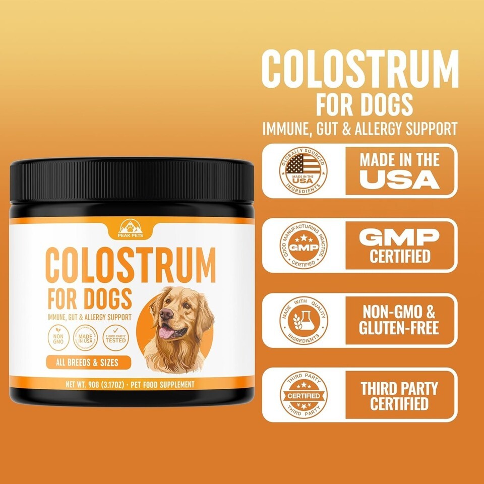 Colostrum Superfood for Dogs - Bovine Raw Powder 90g (3.17 oz), Immune, Allergy, Skin Itch Support, 20% Immunoglobulins, Non-GMO, Third-Party Tested, All Breeds Ages