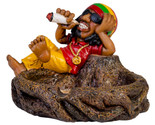 Funny Rasta ashtray, perfect to express your personal style. Features a tree stump design with a weed motif and a grinning, relaxed man smoking a joint. He's wearing traditional Rastafari colours, sunglasses and a gold peace sign necklace. This ashtray makes a unique gift or a fun novelty homeware for yourself, perfect for keeping ash and cigarettes contained.