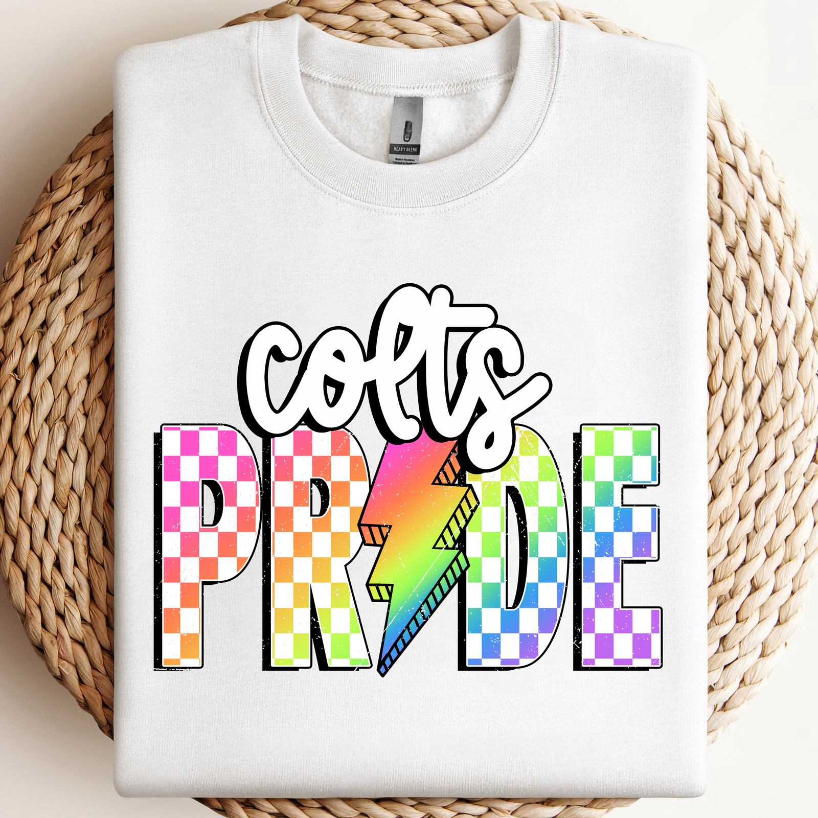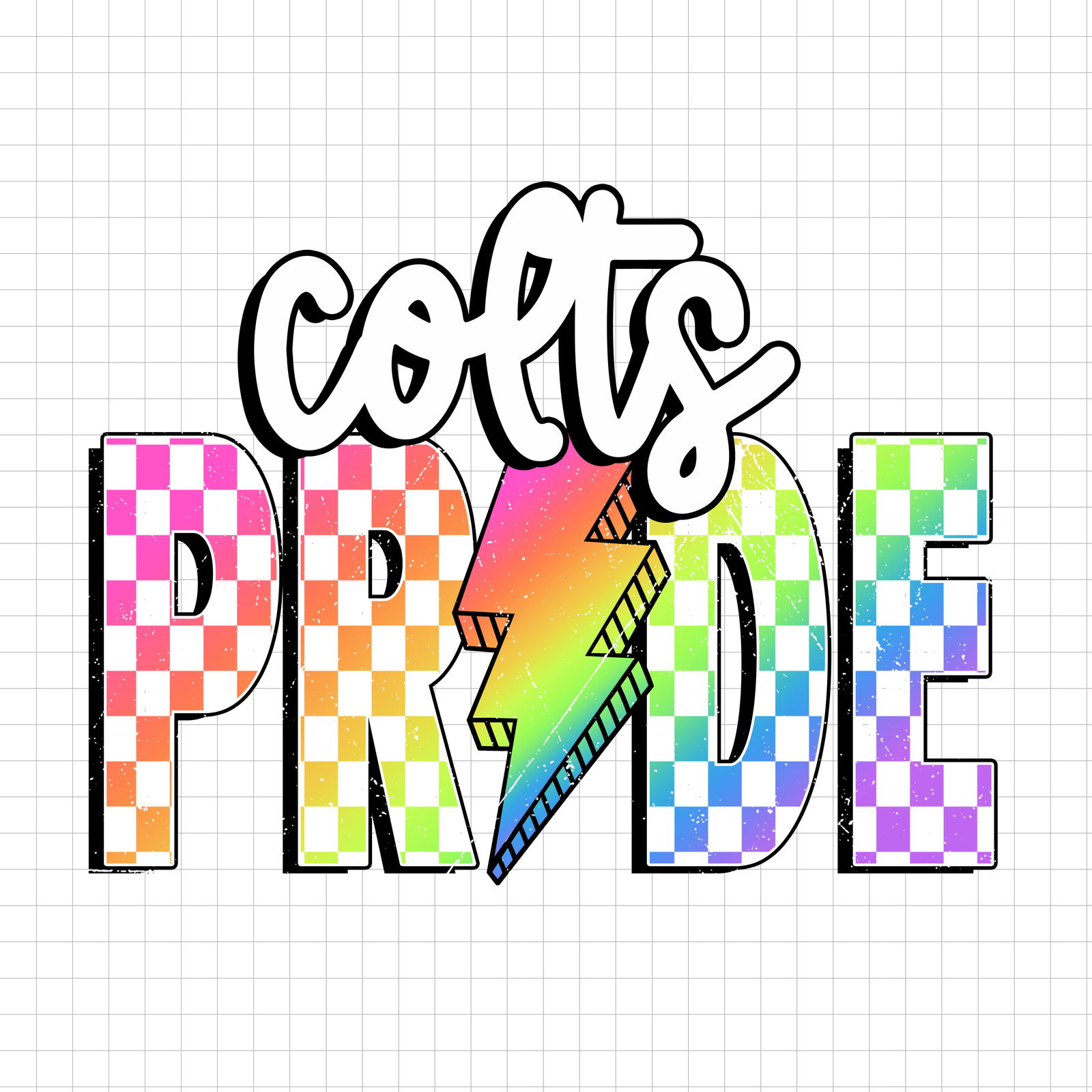 Colts Pride PNG, Checkered Colts PNG, Lightning Bolt Design, Neon Mascot PNG, Trending Design