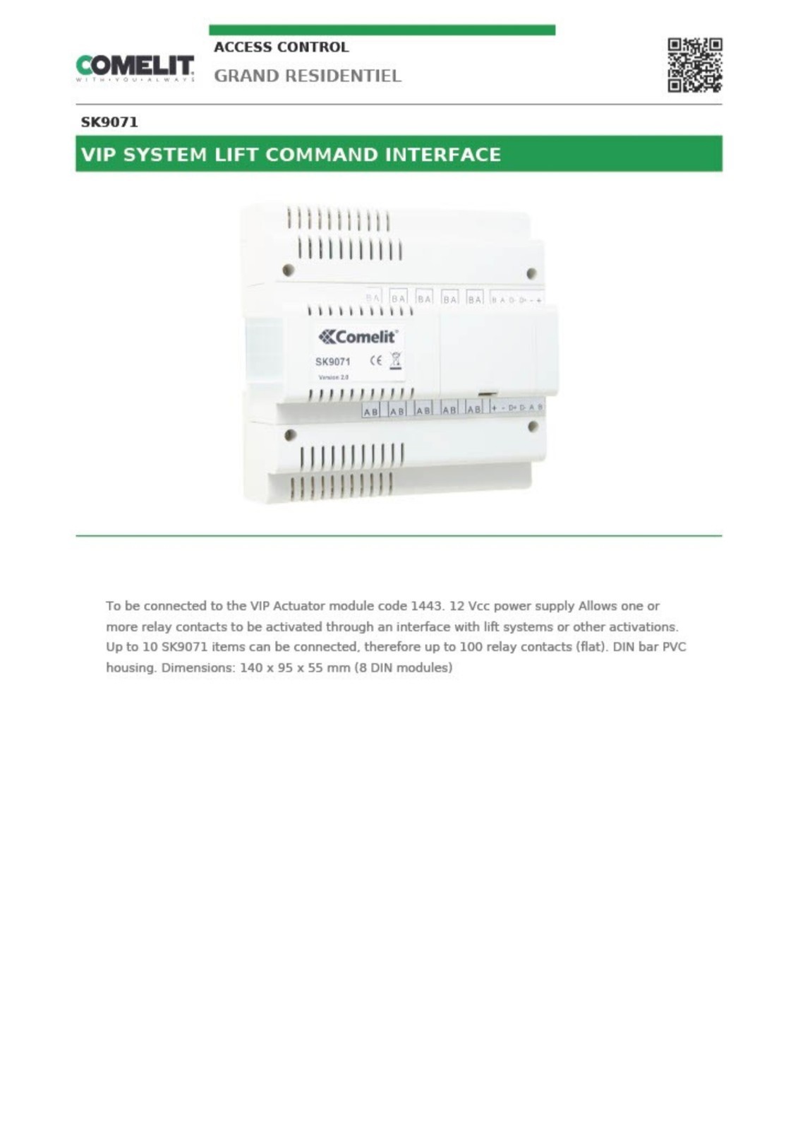 Comelit SK9071 Vip System Lift Command Interface 10 Relays