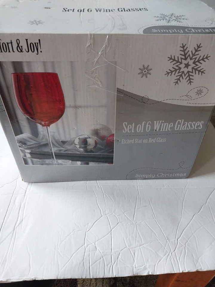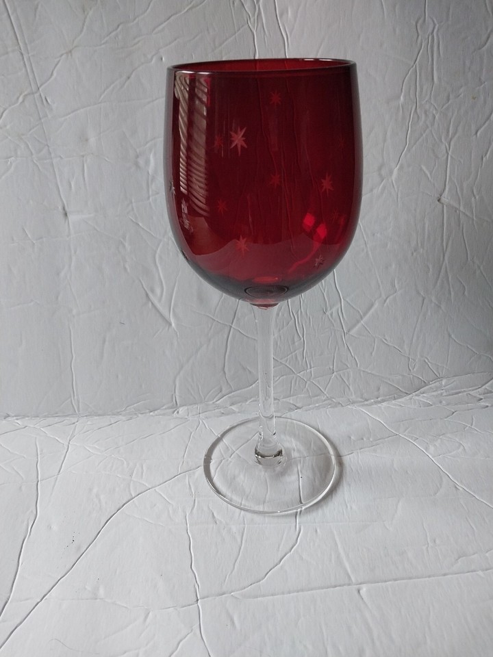- Comfort And Joy Set Of 6 Wine Glasses Etched Star On Red Glass