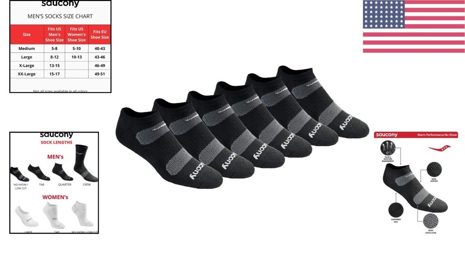 - Comfort Fit Men's No-Show Performance Socks - 6 Pairs, Arch Support & Cushioning
