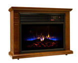 Instant warmth charm is what this Comfort Glow Mobile Electric Fireplace provides. This fireplace's ambient tri-color flame and vintage oak cabinet will fit into any room's decor. Built-in casters allow for easy mobility.