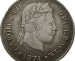 This beautifully detailed reproduction pays tribute to Carlos VII, the Carlist pretender to the Spanish throne, whose claim during the turbulent 19th century was both political and ideological. The obverse bears the powerful inscription ?CAROLUS VII DEI GRATIA?, surrounding the classical profile of Carlos adorned with a laurel wreath, a reference to both legitimacy and Roman imperial heritage. The artist?s signature "P. BRMBO" is discretely included below the neckline, highlighting this piece's homage to the aesthetic precision of period engravings.On the reverse, the crowned shield of Spain is flanked by the inscriptions ?REX HISPANIARUM? and denomination marks ?5 P.?. This heraldic composition symbolizes the unity of the Spanish kingdoms under divine rule, reinforced by the national motto ?Dios, Patria y Rey? (God, Country, and King)?a cornerstone of the Carlist movement. Though this coin is a modern restrike, it remains a highly collectible numismatic piece that captures the spirit of a royal lineage in exile, evoking nostalgia for a monarchist cause that shaped Spain?s complex 19th-century history.
