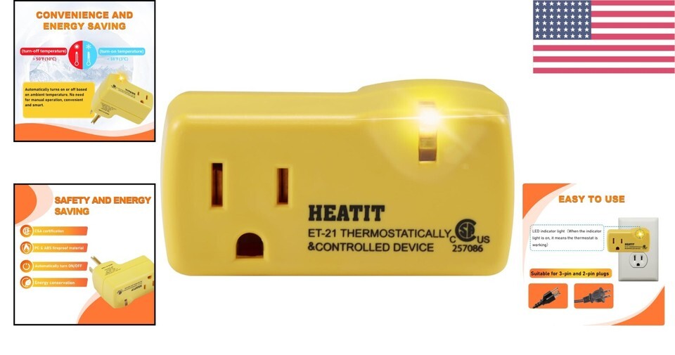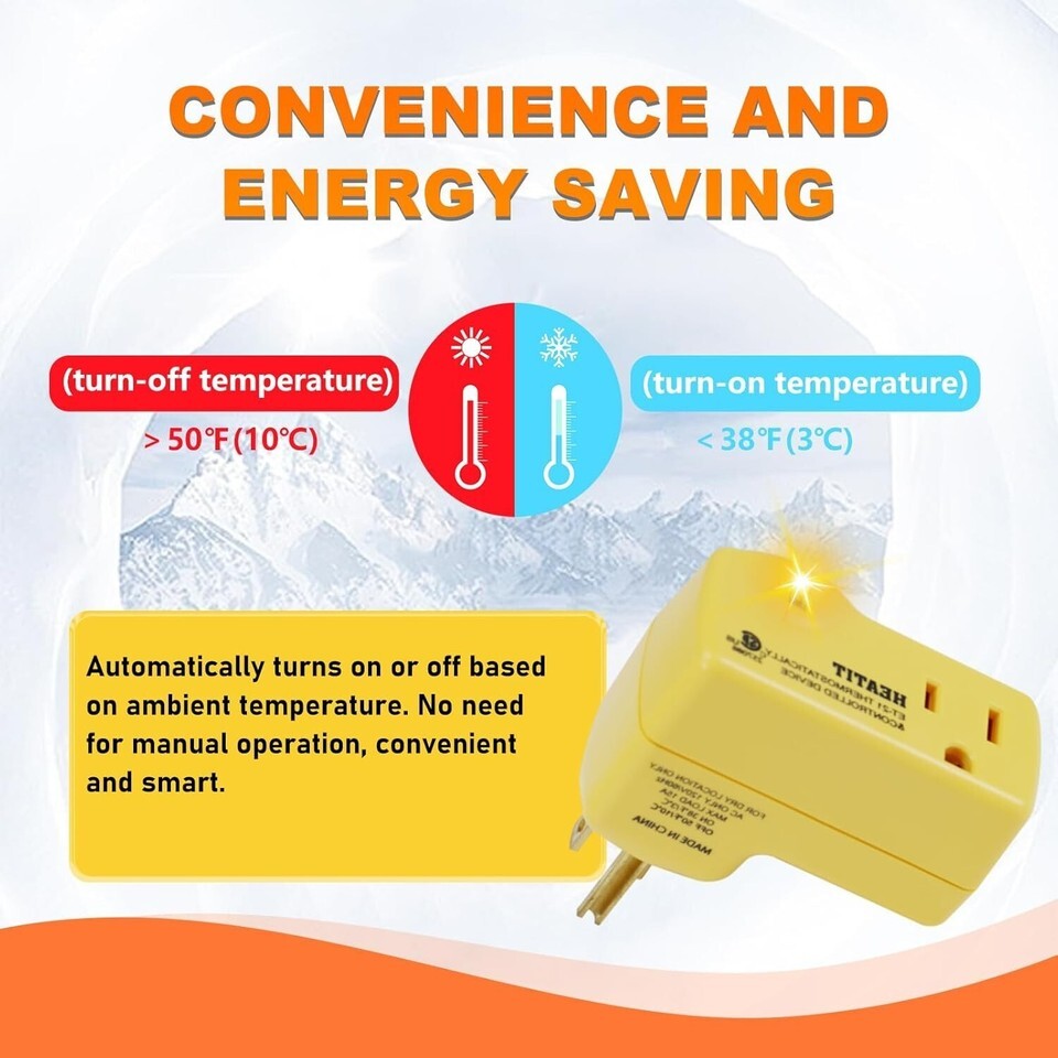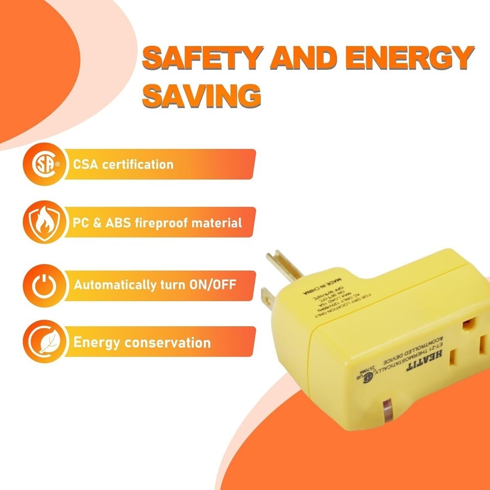 - Compact 120V Smart Heating Outlet - Auto On/Off at 38F/50F with Indicator Light