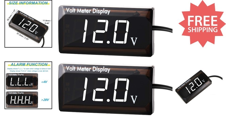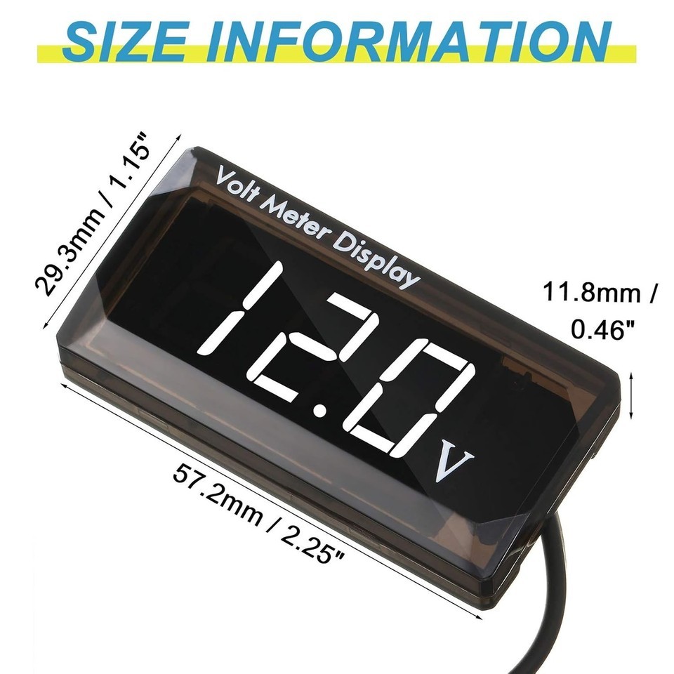 Upgrade your vehicle or equipment with this pack of 2 compact, waterproof digital voltmeters. Designed to measure DC 5V-30V precisely, each meter features a clear 3-digit LED display for real-time voltage monitoring. Easy to install with simple two-wire connection, these versatile gauges are suitable for cars, boats, RVs, automation systems, and more ? providing effortless, reliable voltage readings under extreme conditions (-10C to 70C). Compact and durable, they help ensure your devices operate safely and efficiently.
