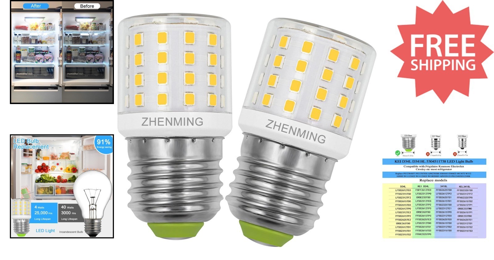 - Compact 2-Pack Frigidaire Replacement LED Bulbs KEI D34L - Daylight White 5000K