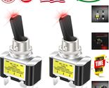 Compact 30 Amp Lighted Toggle Switch for Cars - Red LED Indicator - 2 Pcs