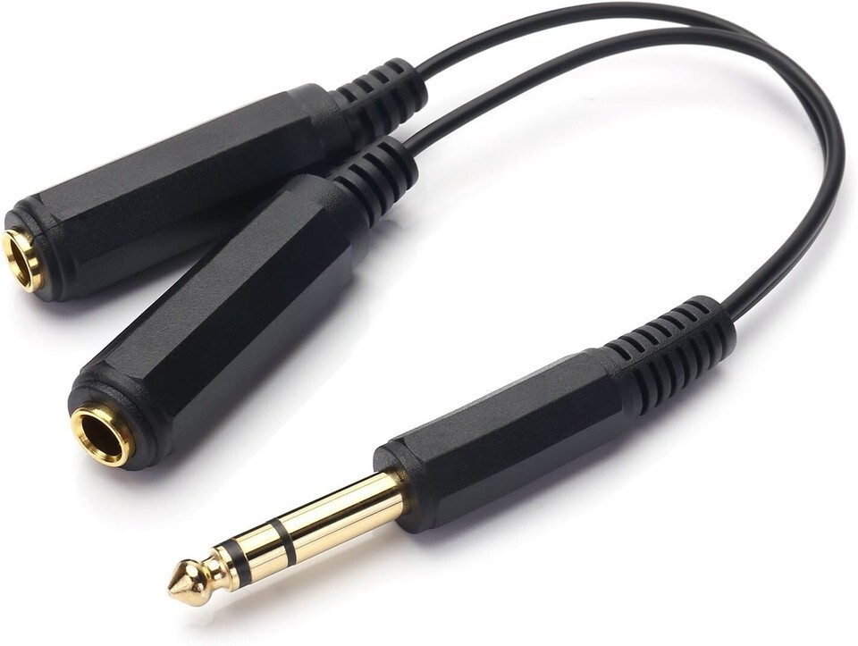 Compact 6.35mm Dual Female TRS Y-Splitter Cable