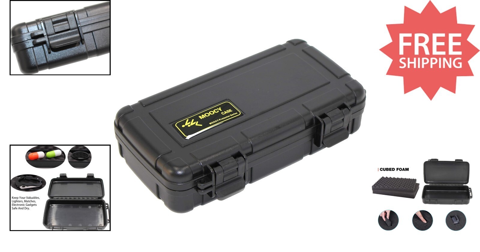 Discover the ultimate in customizable, portable protection with our Moocy Protective Case. Designed with a pre-cut foam interior, you can easily tailor the storage space to fit your specific items snugly, thanks to the included pre-cubed foam tray. Its compact and durable hard-shell exterior safeguards your valuables against impacts, drops, dust, and water, making it ideal for outdoor adventures like fishing, kayaking, or cycling. Weighing only 0.78 lbs with exterior dimensions of 8.6" x 4.9" x 1.9", this case offers a perfect balance of lightweight portability and robust protection. Featuring built-in padlock holes and optional locking latches, it ensures enhanced security against prying hands. Whether you're storing electronics, tools, or accessories, trust Moocy Protective Cases to keep your gear safe and secure.