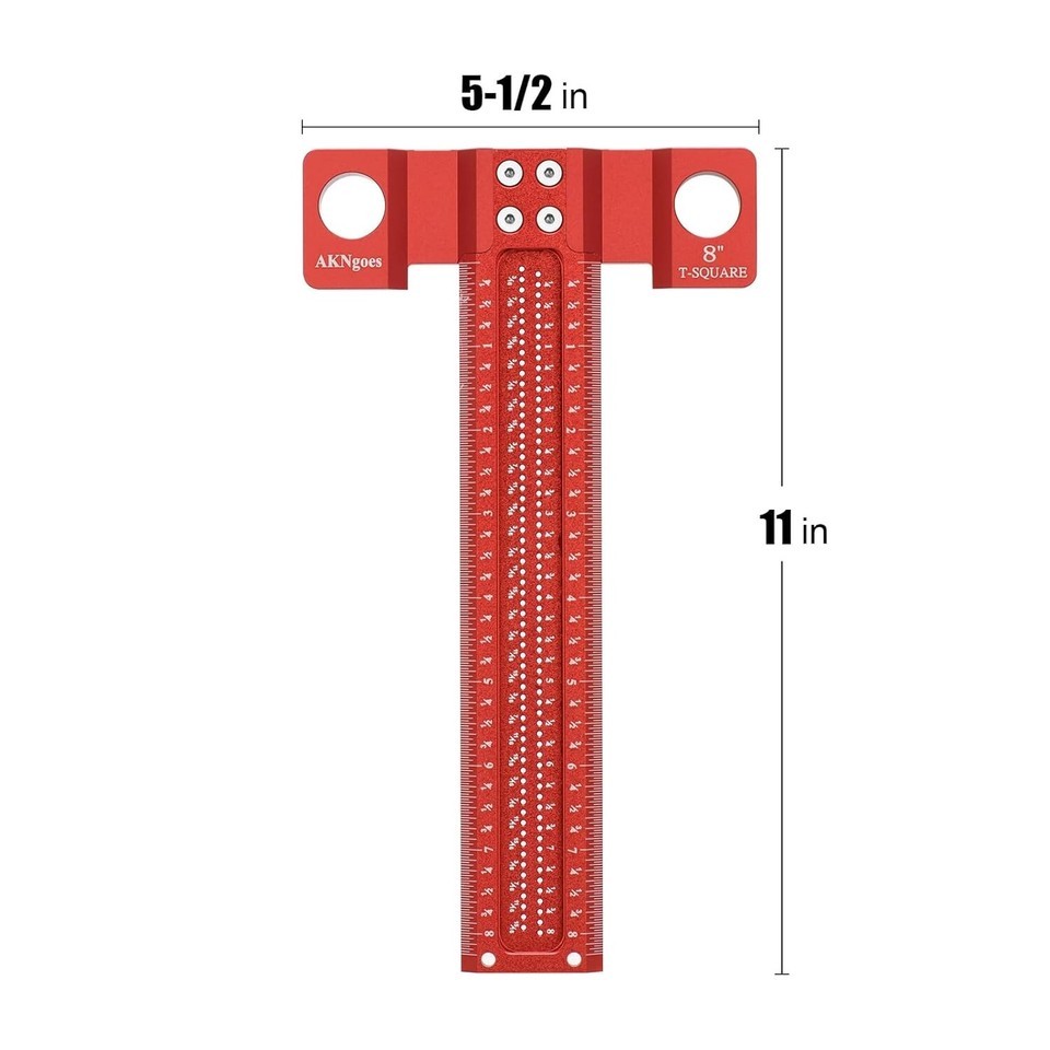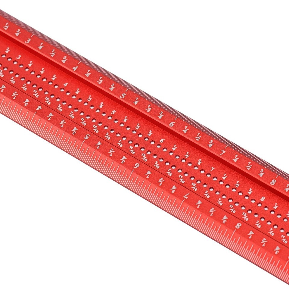 - Compact 8in Woodworking Ruler with Dual Measurement Scales - Red Aluminum