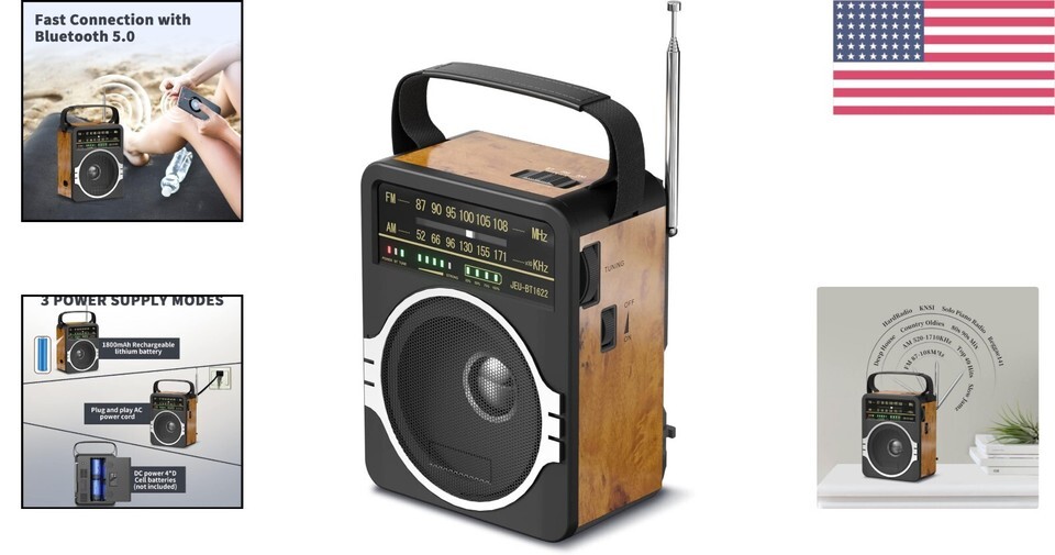 - Compact AM FM Radio with Bluetooth & 5W Speaker: Retro Design, Travel-Friendly