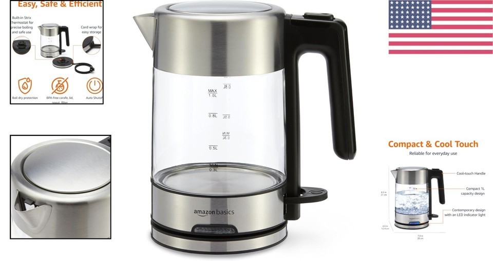 - Compact BPA-Free Electric Hot Water Kettle - Fast Boiling, 1.1 Quart Capacity