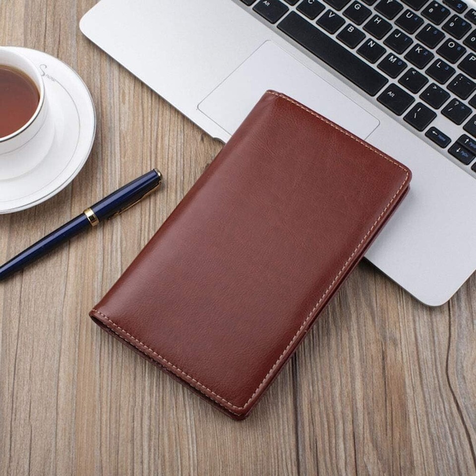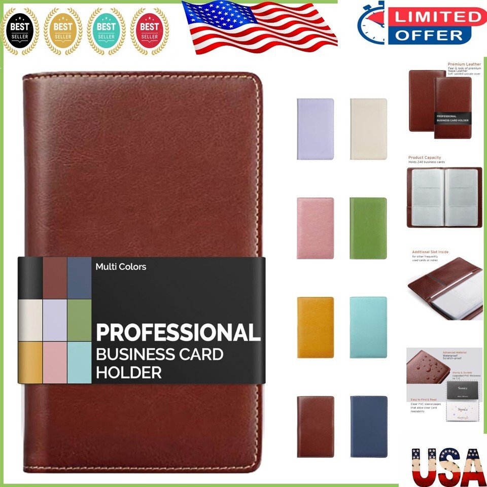 Compact Brown PU Leather Business Card Holder with 240 Slots for Professionals