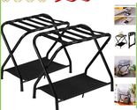 - Compact Luggage Rack with Shelf for Easy Storage - Set of 2 in Black Finish