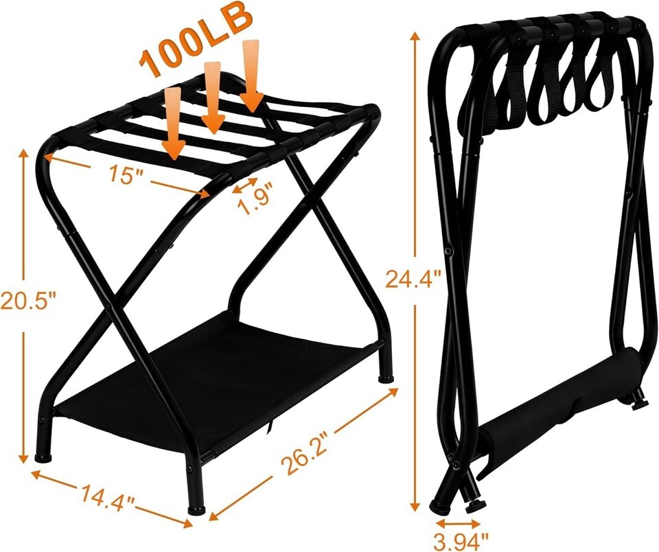 Experience the perfect blend of functionality and style with our Compact Luggage Rack, available in a sophisticated black finish. Designed with your comfort in mind, this luggage rack will transform your space and your travel experience.