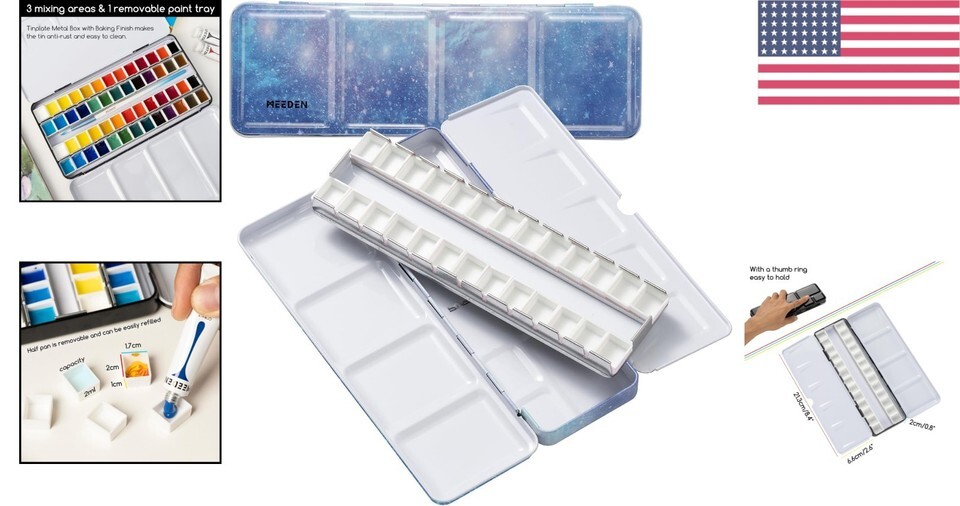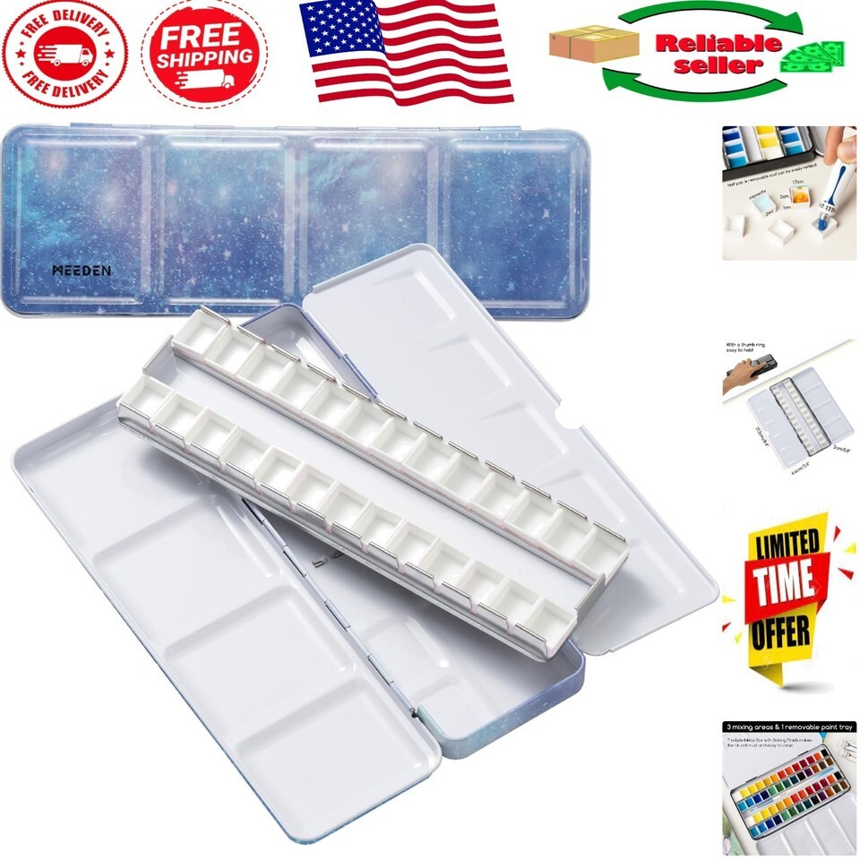 - Compact Metal Watercolor Palette with 24 Removable Half Pans - Travel in Style