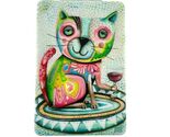 Whimsical Compact Colorful Art Cat with a Glass of Red Wine Purse compact with dual mirrors - one side has magnification. Approximate size: 2.5"W x 3.5"H Condition: Good pre-owned condition. Ships promptly. Thank you!